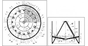CP均化庫(kù)是我廠引進(jìn)德國(guó)BMH公司的一種新型生料均化庫(kù),其特點(diǎn)電耗低、均化效果好。CP均化庫(kù)的均化機(jī)理是庫(kù)頂生料通過(guò)8條斜槽均勻布料,不同時(shí)期的生料在庫(kù)內(nèi)呈橫向分布,庫(kù)底充氣系統(tǒng)設(shè)計(jì)更符合生料充氣后的流動(dòng)性,呈放射狀斜向分布,環(huán)形區(qū)一般分8個(gè)區(qū),每隔5分鐘輪流充氣,充氣區(qū)生料因松動(dòng)及氣流的引導(dǎo)卸入中心區(qū),庫(kù)內(nèi)不同層的生料豎向切割下料實(shí)現(xiàn)生料的均化,不同時(shí)間的生料進(jìn)入中心區(qū)后再進(jìn)行氣體強(qiáng)烈混合均化,從而達(dá)到理想的均化效果。